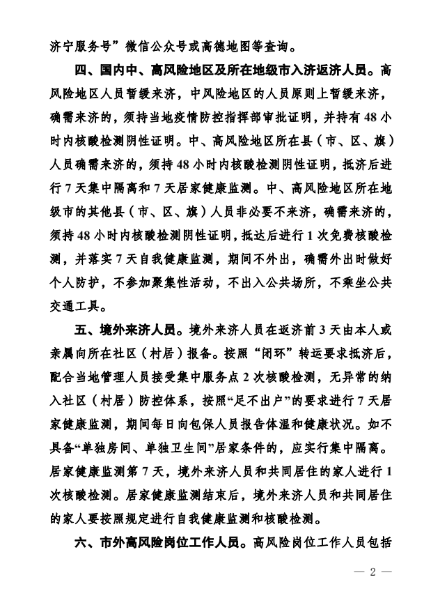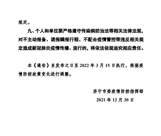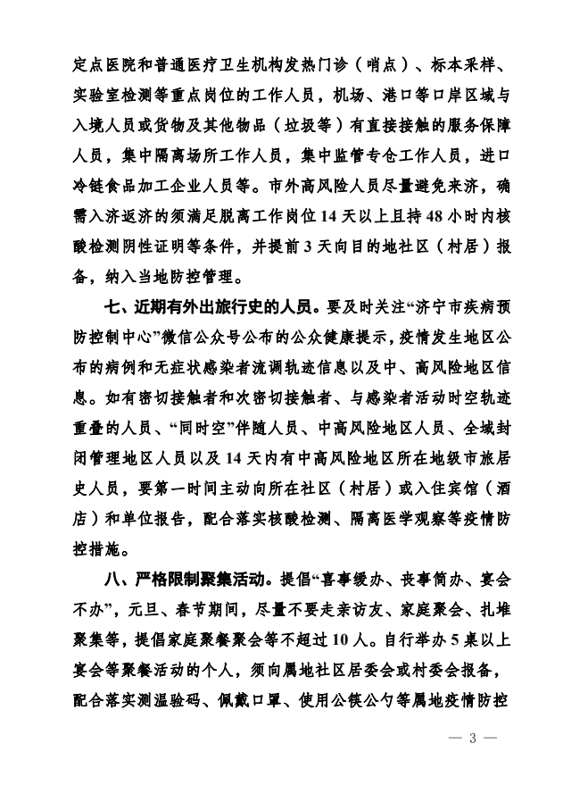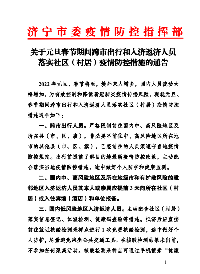 关于元旦春节期间跨市出行和入济返济人员 落实社区(村居)疫情防控措施的通告