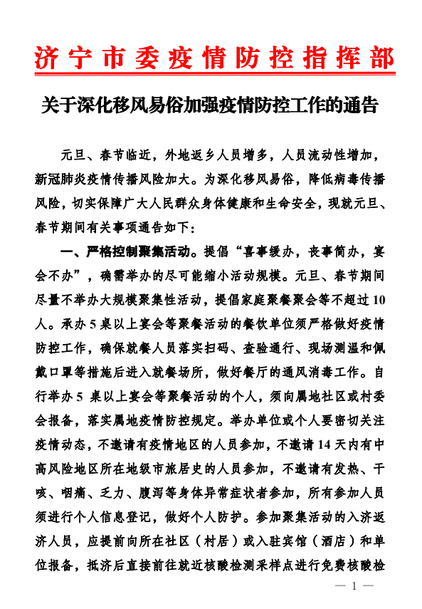 关于深化移风易俗加强疫情防控工作的通告