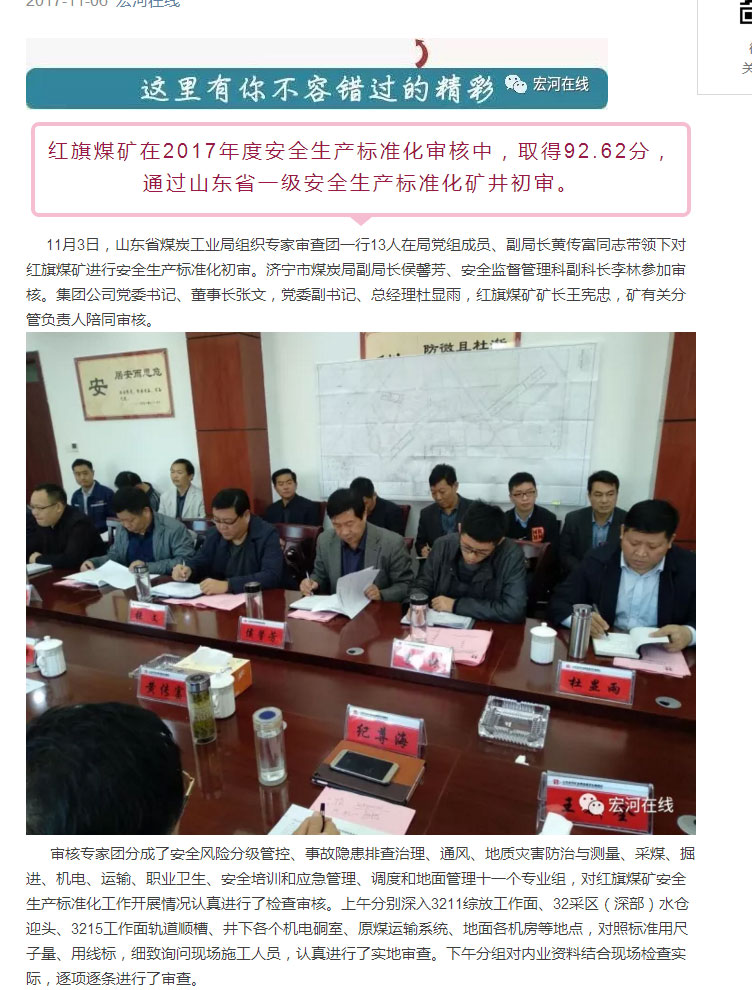 【红旗煤矿】通过山东省一级安全生产标准化矿井初审