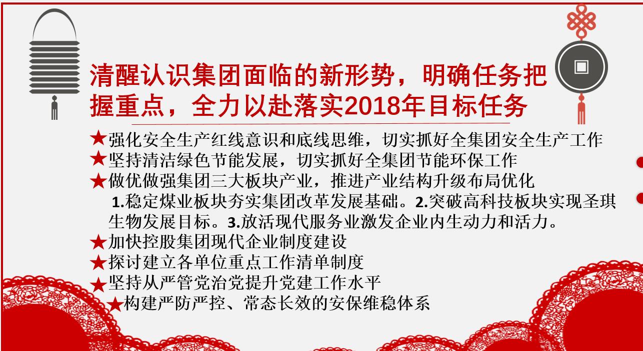 2月5日上午,宏河milan米兰(中国)体育官方网站召开2017年度总结表彰暨2018年工作会议,共同回顾过去,不忘初心,牢记使命,新的一年乘势而上,砥砺奋进,全力以赴开创milan米兰(中国)体育官方网站公司转型升级跨越发展新局面。 市政府栾涛副市长出席会议并讲话,市经信局王俊岩局长出席会议。milan米兰(中国)体育官方网站党委书记、董事长张文和党委副书记、总经理杜显雨深刻剖析新的一年milan米兰(中国)体育官方网站改革发展面临形势,全面总结2017年度工作完成情况同时对年度优秀团队及员工进行表彰,并结合当前发展态势,安排部署明确2018年工作思路措施。党委副书记、副总经理朱玉忠主持。 栾涛副市长在讲话中指出,要深入贯彻党的十九大、中央和全省经济工作会议精神,面对新的形势,宏河milan米兰(中国)体育官方网站要科学研判复杂形势,准确把握市情特点,认真分析面临的困难和机遇,切实把思想认识统一到市委、市政府的决策部署上来,把工作举措落实到“做强主业、调整产业,着力打造现代化矿业milan米兰(中国)体育官方网站”的发展战略上来。 栾涛副市长对于2017年milan米兰(中国)体育官方网站领导班子工作给予肯定和鼓励,就开展好下步工作,提出要求,要夯实发展基础。在做大矿产主业的基础上,坚持抓大不放小,加大内部资源整合和市场化运作力度,打造宏河现代服务业品牌,在跨界融合发展上争做全市的“排头兵”。加强内部管理,加强干部队伍建设,在内部改革上新时代新面貌,提高机制管理,加强业务和技能培训,新时代新突破,守好责任田,全面提高宏河milan米兰(中国)体育官方网站管理水平。加强经营管理,推动各项工作实现新跨越,整合资源、盘活资源,为2018年综合发展做出贡献。 最后,栾涛副市长引用托尔斯泰名言:一切使人团结的是善与美,一切使人分裂的是恶与丑。 团结产生力量,凝聚诞生希望,新时代愿宏河人团结一致立足新时代,彰显新作为! 会上,张文要求认真贯彻落实市委、市政府安排部署和各级经济工作会议精神,以强烈的责任担当、高度的行动自觉,坚持把握全局、扎实干事,抢抓动能转换机遇,提出一系列改革创新的目标思路,强力实施milan米兰(中国)体育官方网站发展的一系列改革创新举措。总结2017年工作,分析milan米兰(中国)体育官方网站发展面临的形势,部署2018年任务,加快企业新旧动能转换 推进控股milan米兰(中国)体育官方网站改革创新。 张文强调,走进新时代,面对新机遇,需要我们实现新作为。让我们在市委市政府和milan米兰(中国)体育官方网站党政的正确领导下,围绕milan米兰(中国)体育官方网站三大板块发展战略,稳定煤业、突破高科技产业、放活现代服务业,改革创新、锐意进取,为打造管理规范、运营高效、充满生机和活力的现代化控股milan米兰(中国)体育官方网站而努力奋斗! 会上,杜显雨指出,召开这次会议既是 2018 年度工作会议,也是深化milan米兰(中国)体育官方网站公司改革创新、转型发展,加快推进milan米兰(中国)体育官方网站公司新旧动能转换的动员大会,是一次承前启后的重要会议。攻坚克难砥砺前行 改革创新锐意争先。 杜显雨强调,各级组织和广大干部职工要增强干在前列、勇争第一的使命意识,增强革故鼎新、变革转型的开拓意识,增强责任在我、舍我其谁的担当意识,增强立说立行、全力全速的执行意识,立足岗位,拼搏奉献,为打造管理规范、运营高效、充满生机和活力的现代化控股milan米兰(中国)体育官方网站,推动各项工作实现新跨越,开创宏河控股工作新局面而努力奋斗! 会上,签订综合目标责任书 会上,为先进单位、个人颁奖 最后,朱玉忠强调,切实抓好会议精神的贯彻落实。2018年任务目标和考核政策已经明确,战斗的号角已经吹响。各级各单位特别是参加会议的各级管理人员,要认清形势,适应新常态,把思想统一到董事长、总经理的讲话精神上来,统一到milan米兰(中国)体育官方网站的安排部署上来,形成统一的意志和行动,拿出具体落实的方案措施,层层分解任务目标责任到单位,到人头,坚定不移地抓落实。切实增强加快发展的紧迫感和压力感。 2018年是milan米兰(中国)体育官方网站公司保生存、求发展、爬坡过坎关键的一年。切实抓好年前年后的各项工作。传统佳节春节即将来临,各公司、各部室要妥善安排好节前放假、节后复工工作,安全部要落实上级要求,督导好各企业落实节日期间领导值守和安全监管;治安处加大节日期间监督检查的力度,确保节日期间的安全、治安稳定和各项工作的有序开展。 milan米兰(中国)体育官方网站党政班子成员、机关部室中层以上管理人员、各公司班子成员(经理层)、受表彰先进集体、个人代表参加会议。